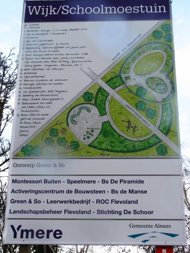Een plantsoen dat aan de beurt was voor grootonderhoud in de bouwmeesterbuurt in Almere is omgevormd tot een wijk-schooltuin. De tuin ligt in de directe nabijheid van enkele basisscholen. De tuin is in opdracht van Ymere en gemeente Almere en in samenwerking met Brede School Bouwmeester, Leerwerkbedrijf, ROC Flevoland, Activeringscentrum De Bouwsteen, Landschapsbeheer Flevoland en kunstenaar Erik Fakkeldij tot stand gekomen. Green&So heeft het proces van herinrichting begeleid (procesadvies, creëren draagvlak in de wijk en samenwerking met partners in de wijk) en heeft het ontwerp voor de tuin gemaakt.