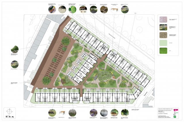 In samenwerking met Neelke Goossens van Studio Schep, heeft Green&So vorm gegeven aan dit proces en de binnentuin. Het project is mede mogelijk gemaakt door een bijdrage van het BuurtFonds Woonbedrijf.